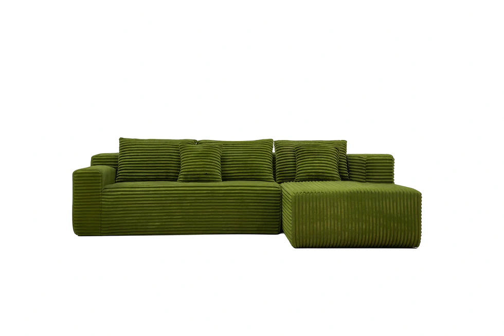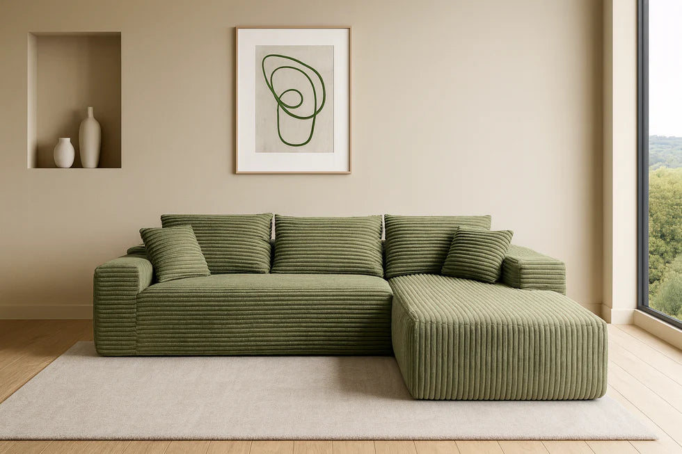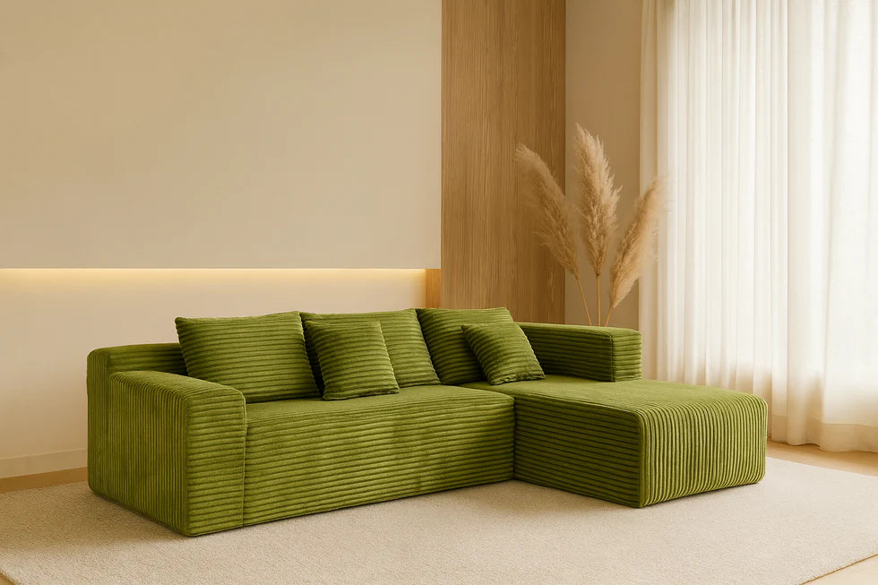Igen! A Sofly Sofa kanapé tartós poliészter kordbársony szövetből készül, amely kopásálló és könnyen tisztítható, így ideális választás olyan otthonokba is, ahol háziállatok élnek.